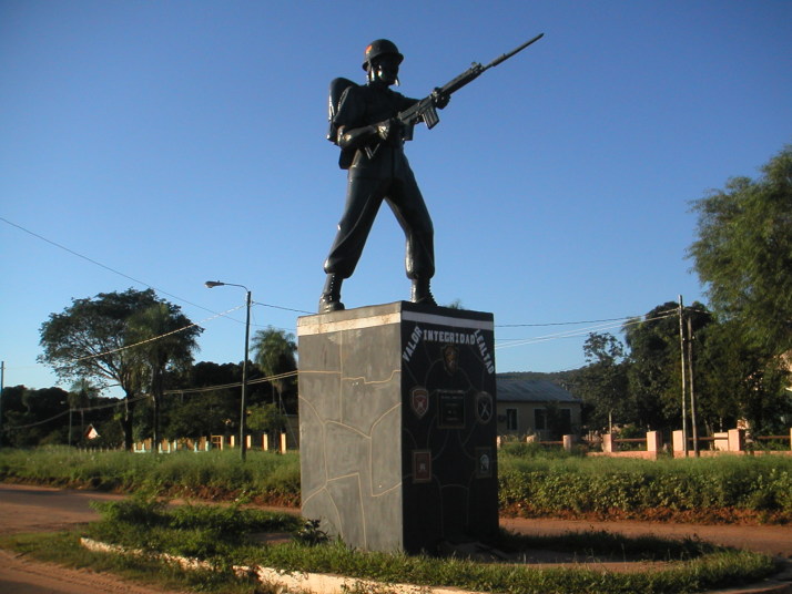 昨日会えなかったダルミロチャベとは午前中に会うことが出来た。猟からは朝帰ってきたのだとか。彼も農場のオーナーなので自由気ままな生活だ。訪問をとても喜んでくれて家で昼ごはんをご馳走になった。良い所があるから案内すると言って小さなバイクで先導し広場の横にある1748年に立てられた教会、街外れにあるジャングルを見渡す小高い丘に案内してくれた。丘の上からは、北には永遠と広がるジャングルが、南にはパラグアイへと続く誰も通らない凸凹道が続いていた。地球上のどんなところにも人の夢と野望とドラマが隠されている。