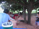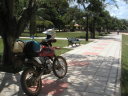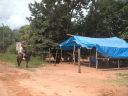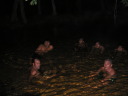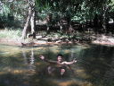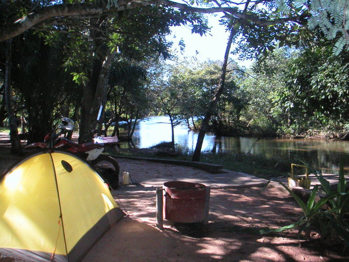 村はずれのうっそうとしたキャンプ場。と言っても誰もいないし温泉とはただの広い沼で沼の一部の水がぬるいだけだ。一応昼間に近所の人が掃除に来てお金を徴収して管理してはいるのだが、南米人のゴミ捨てのモラルはとても低く、ここもテントの周りや沼の中にはビンや缶などが落ちている。先ずはゴミ掃除に汗を流してから温泉に入った。沼にはワニも出るらしいが、幸い温泉に入ったあとで人から聞いたので気持ちよく入れた。湯の中には魚たちが無数にいる。小さい奴が体をつついてくるのでくすぐったい。しかし湯から体を出すと蚊の襲撃に遭う。やがて暗くなるとブラジルからの物資の輸送をしているボリビア人トラックドライバー達が入ってきた。“こないださあ、自転車でキャンプ旅行している頭のおかしい日本人が居たよ”なんて会話が耳に入ってくる。こんなところで、しかも危ないと言われているこのあたりでキャンプをしながら旅をする変人は僕だけかと思っていたが世の中には意外と変人は多いものだ。ウユニ以来のキャンプになるが環境は大違い。寒さに震えた静かなウユニの夜に対してこちらは暑くて寝袋も要らず、獣の鳴き声が聞こえる。蚊も凄まじくてテントの中で線香を焚く始末。近くの村に1泊7ボリビアーノ(100円)の宿があったけれどもこんなに蚊が多いのではテントの方がマシだろう。
