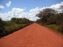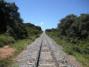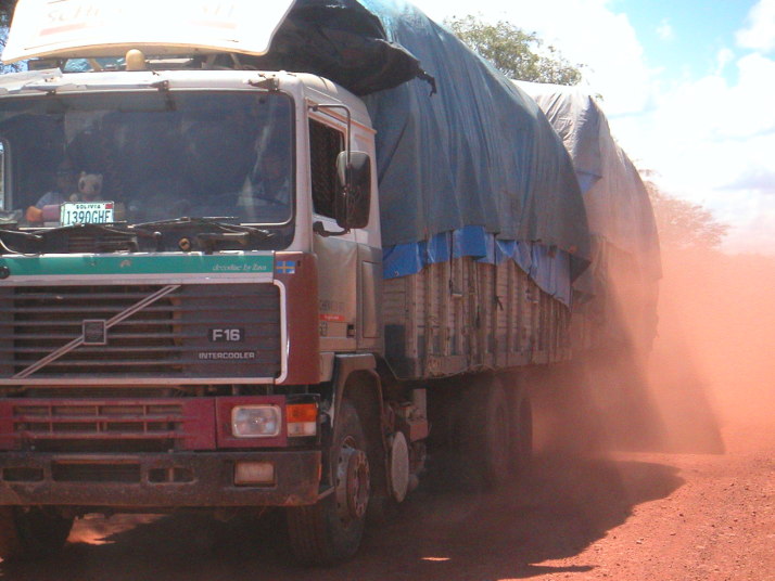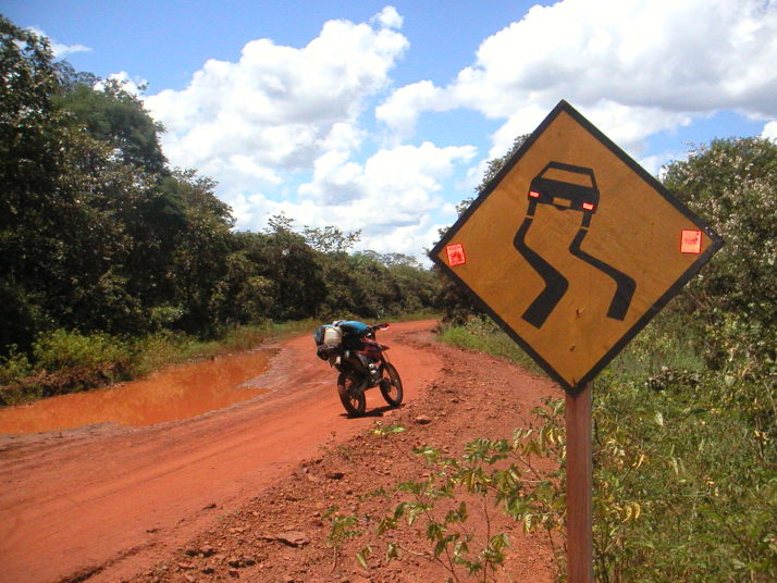 拍子抜けしてしまうことにサンホセデチキートから130km東のロボレ(Robore)へは綺麗なアスファルトが敷かれていた。その先しばらくすると工事区間に入って車が通るともうもうと埃のあがる旧道の悪路を走ることになったが、遠くないうちにブラジル国境まで全線アスファルトで結ばれるだろう。ただ相変わらずここも殆ど車を見かけない。グランドキャニオンのような雄大な岩山を過ぎると線路に沿ってジャングルの中の林道が続く。この日はアグアカリエンテ(AguasCalientes)(熱い水)という文字通りの温泉でキャンプをした。