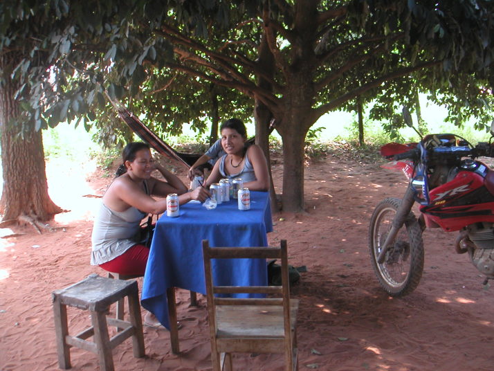翌日ブラジル国境の街プエルトスアレス(Pt.Suarez)まで200km。のどかな道を、時々トラックの埃につかまりながら淡々と走る。途中小さな村では青空食堂に寄った。木陰でビールを飲む男たち、隣のハンモックで遊ぶ少女たちは店員でもある。僕が木陰に入ると直ぐに男たちからビールの無料の差し入れが出てきて仲間に入る。少女達への青空日本語教室が始まる。ギラギラした太陽、暑さ、ビール、みんな笑顔、陽気、誰も働かない、誰も困らない、時間が動かない、平和。そんな最後のボリビアを胸に刻んだ。