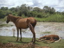 パンタナール湿原を離れて再びアスファルトの国道に戻る。さすがにブラジルの道路は走りやすいと感心していたら車に跳ねられたクロコダイルを見つけてびっくり。その直後にバイクの調子が悪くなりやがて止まってしまった。点検すると燃料コックにゴミがぎっしり詰まっている事が分かった。電気系ではなくて一安心。道路のクロコダイルが生きていなくてもう一安心。ボリビアの燃料にゴミが混じっていたのだろう。