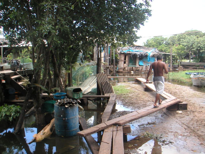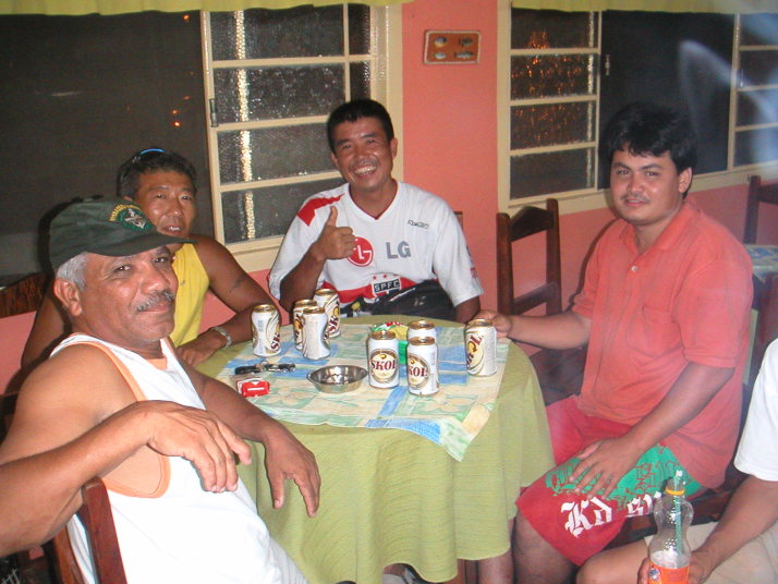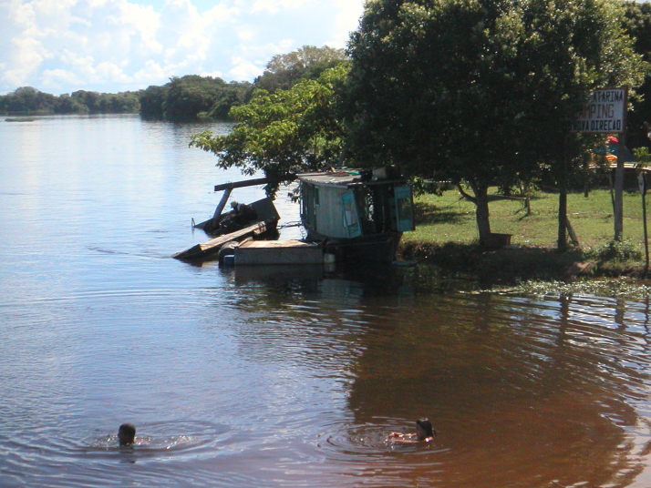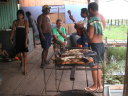 彼や部落の雰囲気が気に入ったので、この日は殆ど走っていなかったけれど隣の家のもう1人の日系人(混血)エディソンの家に泊めて貰うことにした。早速彼らの日常生活に溶け込み、3人で小さな船で川を遡ったり、集落の仲間と目の前で釣った魚を焼いて食べ、ギター演奏を聞きながらビールを飲み、川に飛び込んで遊んだ。夜はファビオさんに連れられて近くの日系人のレストランに魚の唐揚げを食べに行った。蚊が多くて足をブスブスに刺されて足中に謎の蕁麻疹が出て暫くかゆくて大変だった。この3日間は復活祭で夜6時までは肉を食べられない。会う人皆が仲良しで話しもビールも笑いも止まらない。