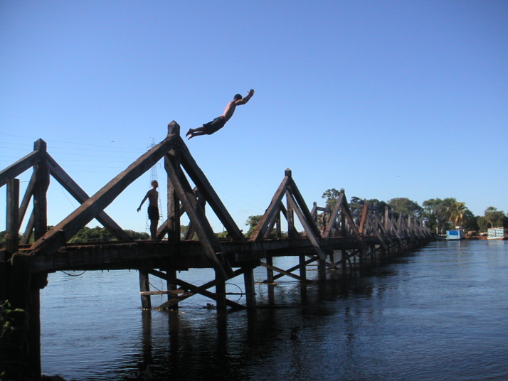 マットグロッソドスル州には日系人が多い。パンタナール湿原でもファビオ小川さんという面白い日系人に出会った。湿原を流れる川の畔の小さな集落で渡し舟を待っているときに上半身を真っ黒に日焼けして短パン、ビーチサンダルに片手にビールという出で立ちの40半ばくらいのおじさんに会った。顔はどう見ても日本の田舎に居る優しいおじさんだったけれど、格好は浜松の海岸で見かけるブラジル人だったので直ぐに日系人だと分かった。直ぐに仲良くなって家に昼食に呼ばれた。家は日系2世の親のもので、湿原に建つ高床式手作り住宅で廻りを魚が泳いでいる。クロコダイルも足元に住んでいるらしい。母親は日本に出稼ぎに行ったことがあるので立派な日本語を話すが3世の彼はもう少し外人っぽい。日本に行った数年間で言葉を覚えたらしいが、工場で働くのではなく日系ブラジル人相手の商売、例えば車屋とかブラジル弁当屋などを立ち上げて軌道に乗せては店ごとブラジル人に売ってお金にして次の国へ行く。そうして世界を旅して廻ったのだそうだ。彼は明るくて憎めない人柄なので、どこへ行ってもその国の人脈ができて、例えば日本ではヤクザとも仲良くなって結構楽しんだようだ。金は貯めずに直ぐに使い切る性格というが、今でも日本やブラジルなどに幾つか会社が残っているようで金には不自由せず、実家の湿原でビールを飲んだり海岸でサーフィンをする気ままな生活を送っている。もちろん電気も無い集落に住んでいれば金の使い道はビールくらいしか無さそうだ。日本人も住む場所が代わって世代も代われば随分と変わるものだ。