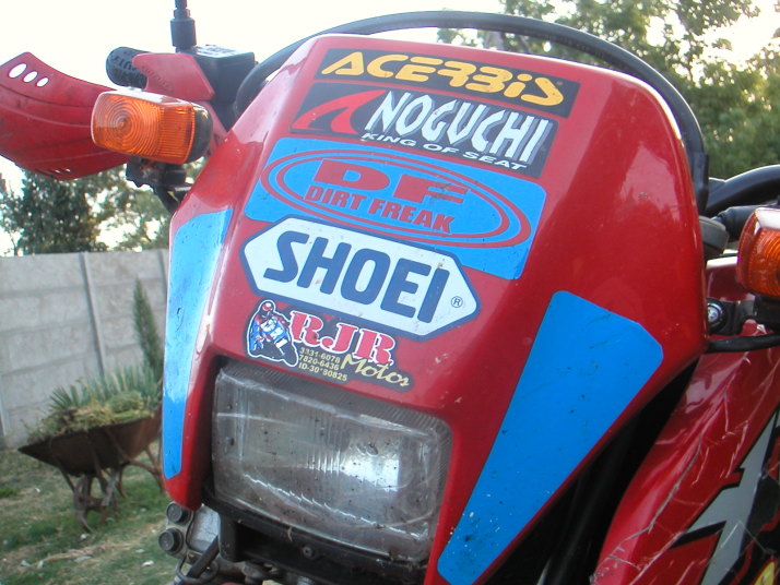 国境や旅の記念になるような要所要所の建物の窓ガラスには旅人が記念に貼ったシールがたくさんある。グループの名前や旅のホームページが書かれていたりする。僕はそこに彼のお店のステッカーを貼っていた。オートバイのヘッドライトの上とヘルメットにはRJRに加えて過去に僕がサポートを受けた事のある会社のものも貼っていた。ロシア横断旅行のときスポンサーを買って出て頂いたイタリアのオフロード用品メーカーACERBIS、レースをサポートして頂いたヘルメットのSHOEI、日本のオフロード用品メーカーのダートフリーク、パリダカなどのシートで有名なノグチシート。