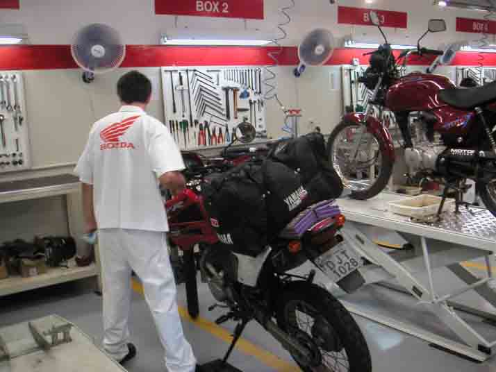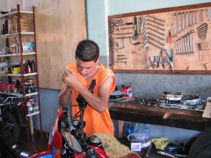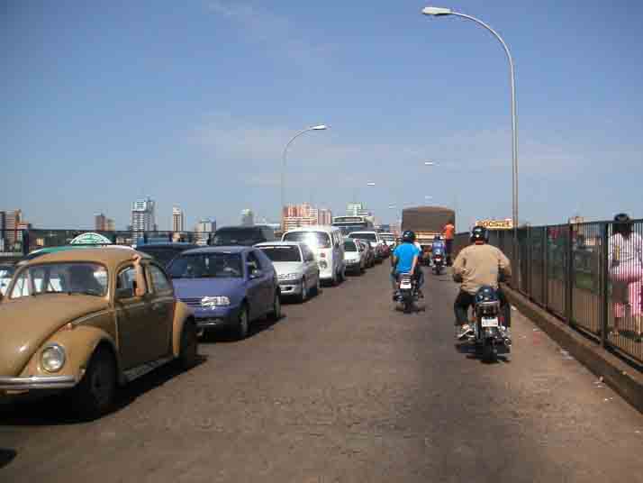 パラナ川を渡りパラグアイに入国するとその雑踏と喧騒、生活用品の並ぶ店の数々、日本製のボロい中古車、マシンガンを構えたガードマンのいる両替屋などエネルギーに満ち満ちた雰囲気に圧倒される。イミグレーションの列にまで物売りがうろうろし、バイクを停めようとすると子供たちが追いかけてきて、頼みもしないのに“バイクを見てるから”と言って金を貰おうとする。整然としたブラジル側とは川を挟むだけなのに大きな違いだ。直ぐにお目当てのバイク屋を探すが、バイクも部品も中国製一色だった。腹をくくって激安のコピー部品を購入し、必要な工具を持っていなかったので同じく激安の