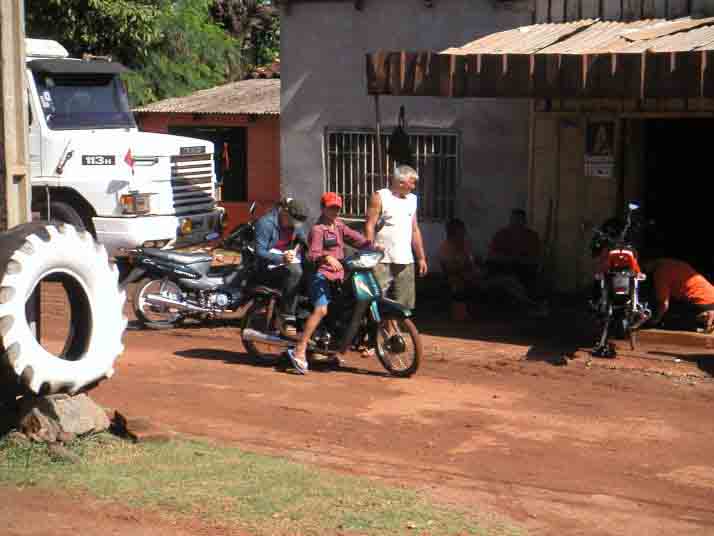 その時、軍服の様なものを着た男が道端から自分に向かって突然飛び出してくるのが視界の隅に映った。この国では警察に停められて賄賂を要求されたりすることもしばしばあると聞いていたし、クリスマス前なので特にお金が欲しい時期だ。明らかに制限速度は越えていたから、止まらなかったら撃たれるかも知れないととっさに閃いて急停車した。その若く大きな軍人の目は興奮して血走っていて、走り寄ってきた時には恐ろしくて逃げようかとも思った。しかし丸腰の様子で、手にはジュースを持っているのを見とめて思い留まった。スペイン語なのか地元ガラニー語なのかも分からない程の早口でまくし立てるのでさっぱり分からないが、多分状況からして乗せてくれと言っているのだろう。しかしバイクの後ろには荷物があるから人など乗せられない。すると状況を察知した様子で荷物の上に座るとアピールしてくる。あまりの切迫した様子と血走った怖い目に思わず要求を受け入れてしまったが、走り出して直ぐに自分は何と愚かなお人好しだろうと激しく後悔した。何の遠慮も無くいきなり後ろで缶ジュースを開けて飲み始める男。暫くして目的地で下ろすと礼を言うでもなく手を出してきて、どうやら金を出せとのたまう。さすがに頭にきて日本語でののしると悪びれた様子も無く去って行った。
