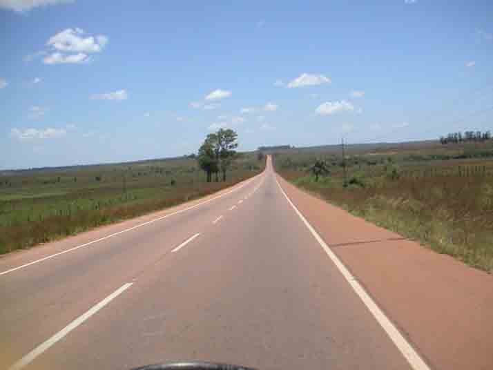 雨も上がり夫妻とお別れし国道2号で首都アスンシオン方面に向かい直前で国道1号へ左折しパラグアイ第ニの都市エンカルナシオン方面へ向かう。直径2m以上の木製の車輪で出来たリヤカーを引く馬車、煙幕を撒き散らして走る古い車、農作物の露天商など、国の経済力の無さを感じさせる光景が新鮮に目に映る。しかし空気は暖かく、黄色い花が咲き乱れるのどかな田舎の風景に悲壮感は感じられない。アスンシオンから遠ざかるにつれ景色はひらけ、たまに現れる小さな街以外に目を引くものも少なくなりアクセル全開でひた走る。