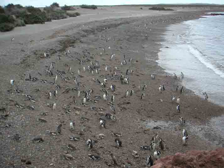 透き通った海や海面下40mにあるという塩湖に驚きはするものの風景は大して他と変わらず殺風景で何だここはと思うのだが、海岸に行くとびっくりする。アシカの仲間のオタリアが断崖絶壁の下の海岸に遠くのほうまでびっしりと無数に寝そべっているのが見える。別の場所には更に体が大きく獣の匂いのするゾウアザラシがハレムを作っている。僕は見なかったが鯨も頻繁に見れるらしい。翌日訪ねた更に200km南にあるプンタトンボという別の保護区の海岸にはペンギンの営巣地があり、あたり一面ペンギンだらけ。ペンギンは人間を全然怖がらないので巣の合間を縫うように遊歩道が続いて僅か数十センチの距離で彼等を観察できる。テレビでは良く見る光景だが実物の迫力は圧巻だ。
