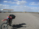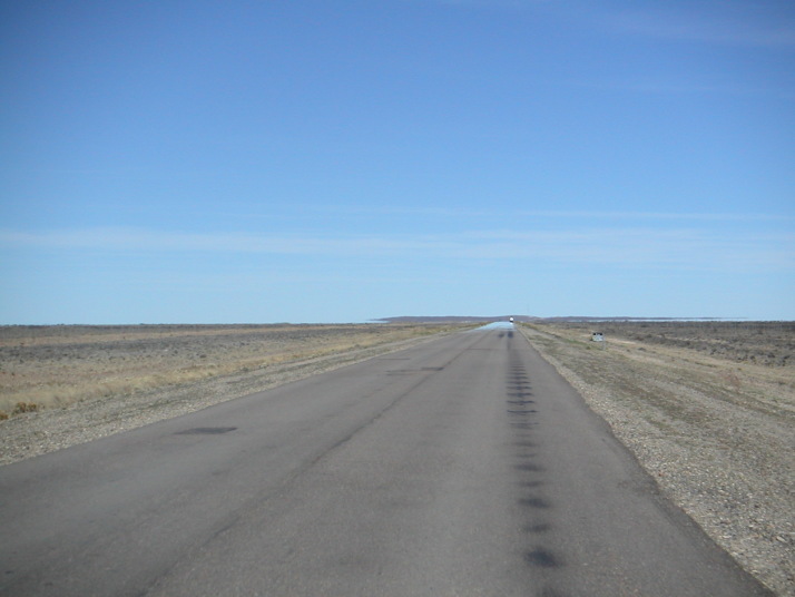 ガイマンから国道3号へは山の中の未舗装路を使いショートカットした。車は猛烈な埃を巻き上げるので会いたくなかったが60km走って3台の対向車にしか会わず、風は南西から吹いているので埃を浴びる事も無かった。しかし3号から東に逸れペンギンの営巣地プンタトンボまでの未舗装路の往復100kmは観光客の車が多く、道が悪く車はのろのろとしか走れないので埃を浴びては抜き浴びては抜きを繰り返し、体もバイクも荷物も真っ白になりうんざりした。3号に戻ってからも、定規で線を引いたようにいつまでも直線が続く景色の変わらない退屈な道と、アクセル全開で走る僕を猛スピードで追い抜いていく車やバスの多さにもうんざりした。もう少し排気量の大きなバイクだと楽だけれど、もし今度同じバイクで同じ道を通ることがあるのならばせめてアクセルを握らなくてもオートクルーズで腕を組みながら走れるように改造したい。風も徐々に強まり、向かい風で80km/hしか出ない時に速い車に抜かれるのは神経を消耗する。この頃からたまにバイク旅行者とすれ違ったり追い抜かれるようになったけれども彼らは皆排気量の大きなバイクだから僕を抜く時もあっという間に見えなくなるし、この退屈な区間を急いで通り過ぎてしまう様だった。彼らと会って話せるのはガソリンスタンドでの束の間の時間だけだった。この日から急激に風が冷たくなり、しっかりした防寒着を持っていなかったので夕暮れ時にコモドロ(Cdoro)のガソリンスタンドにたどり着いた時には芯まで体が冷え切っていた。つい数日前にはあんなに暑かったのに。振り返れば数日の間に随分と南下したものだ。>