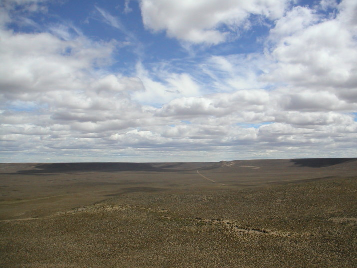 コモドロを離れ直ぐに右折し内陸に行く道、国道25号を進む。暫くして未舗装の荒野へと続く16号に左折し内陸の石油の町ラスヘラス(LasHeras)を目指す。このルートを選んだのは3号線を走るのに飽きたので、そろそろ長いダートを走って見たかったからだ。この辺りは石油が取れるので荒野のあちらこちらにシーソーの様にアームを上下させる採掘機が見える。巨大なものもあればアームの長さ数メートルくらいの小さなものもある。と言うことは比較的浅い地層でも石油がとれるのだろう。お陰でこの辺りはアルゼンチンの中でも一番ガソリンの値段が安くレギュラーがリッター50円くらいだ。産油地から遠くなるにつれ輸送コストがかかるのでアルゼンチンでは北部が一番高い。国の政策としてはどうかと思うけれど合理的ではある。