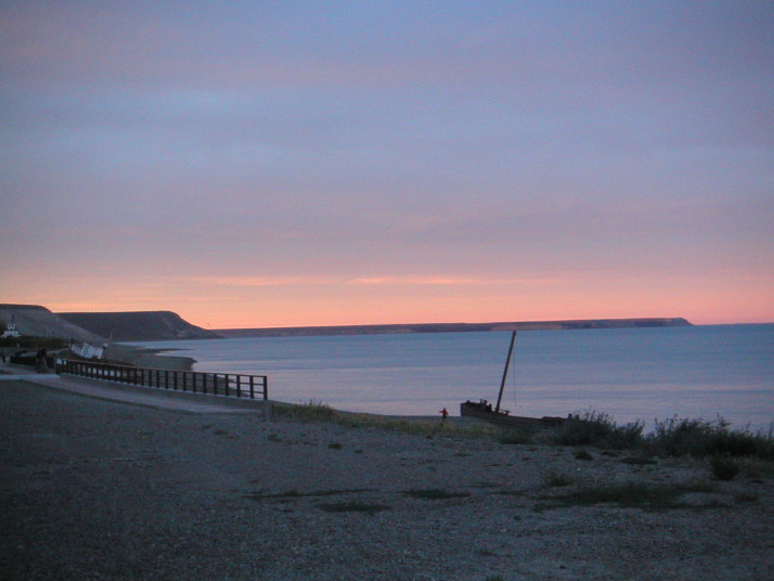 昼前に重い腰を上げて旅を再開する。夕方、3号を南下しながら宿泊地を探していたが、どの町も美しく魅力的で決めるのが難しい。観光客が少ないところにしようと思い、3号から50km離れた海岸の町プエルトサンタクルズ(Pt.Sta.Cruz)に決めた。予想通り街は静かで観光客は少なく、無料の快適な町営キャンプ場には僕の他に二組しか居なかった。ここには軍の基地があるためか、町の入り口で車の出入りを監視している婦人警官にレストランを聞いたら教えてくれたついでにバイクの書類やらパスポートやら根掘り葉掘り調べられた。アルゼンチンはのんびりした風景の国だけれども軍の施設をあちこちで目にする。その緊張感の対比がとても不釣合いに見える。