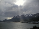 ウシュアイアに近づくと湖や雪を被った山々が視界に現れ、峠では雪もぱらつき、最果ての地に来た感動の演出をしてくれた。