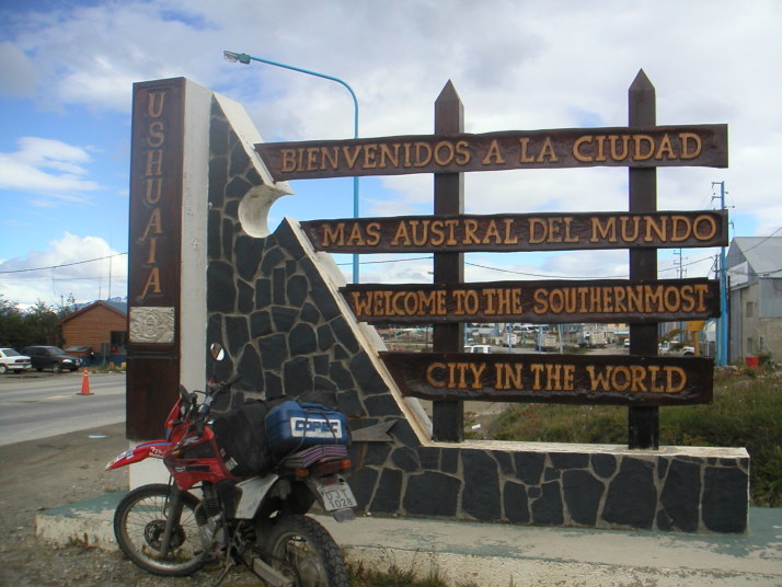 ウシュアイアという町は観光地で、ホテルもたくさんあるし大きなスーパーマーケットもあるちょっとした町だ。昔自転車旅行で行った事のあるアメリカ大陸の北端、アラスカのプルドーベイの様な人影の無い石油基地のある、生物がいる事を感じさせない最果てらしいうら寂れた雰囲気は無い。町の背中の氷河や雪を被った山々とそれを映すビーグル水道の静かな海のある景色はどこから見ても絵葉書のように美しく、全く違う魅力のある町だ。入り江にはヨーロッパから旅をしている人達のヨットがぎっしりと並び漁船が殆ど見られない。ビーグル水道では漁業が盛んなのかと思いきや魚を含めて食料は殆ど輸入ものらしい。まさに最南端観光で成り立つ町なのだ。この港からは南極観光の船も出ていて2000ドル位からあるそうだ。旅したことの無い大陸は残り南極だけだし南極の山にも興味がある。でも船だとパーティー用に正装を用意しなくてはならないらしいし、そもそも狭い船内でうねる海を眺める旅をする自信は無かった。