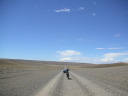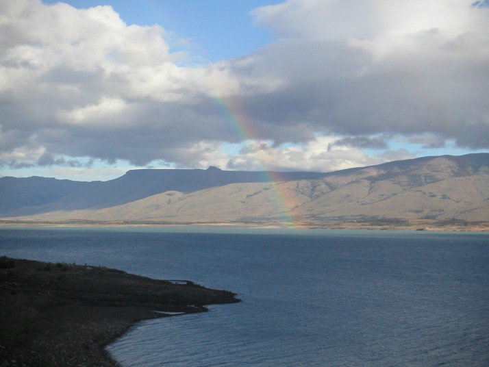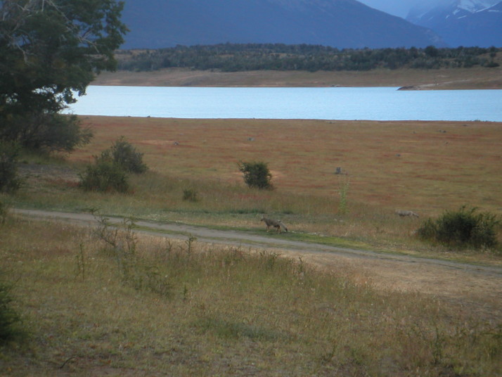 氷河湖の入り江の対岸にあるキャンプ場まで、ヘッドライトの前を横切るウサギ達に気をつけながら50kmダートを走った。有料のキャンプ場は満員だからと断られたけれど、紹介してもらった無料の殆ど人の居ないキャンプ場はトイレすら無いただの草原だったけれど素晴らしかった。目の前に氷河湖を望み、近くに氷河があるとは思えないほど昼間は暖かく裸で過ごせるほどで夜も風は弱かった。野鳥がさえずり、コンドルが舞い、少し先をキツネが横切っていた。馬の群れがテントの横を駆け抜けて行ったときにはさすがにびっくりした。寒さと強風の日々のあとのあまりの平和な雰囲気に時間を忘れ2日間を過ごした。