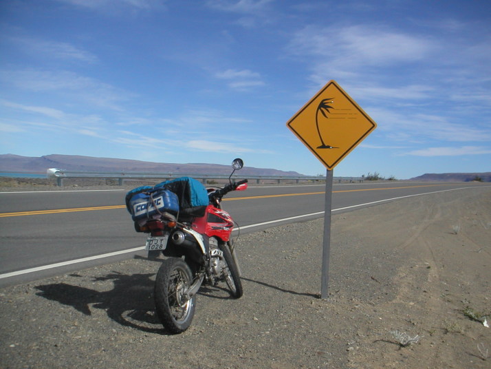 彼等のバイクと僕のバイクの大きな違いは排気量だ。彼らは少なくとも600cc以上なのに僕のは250ccしかない。最初から分かっていた事ではあるが、アスファルトの上では彼らに大分引けを取った。特に40号をカラファテへ北上する道路は風が猛烈に強く、アクセル全開なのに最高速度が50kmしか出ない時もあって町までガソリンが足りるかヒヤヒヤした。もう一つまずまず困ったのは小便をするタイミングだった。寒いから直ぐに尿意を催し道端で立ちションをすることになる。幹線道路国道40号の中でも有名な観光地に挟まれた比較的交通量の多い区間とは言っても前後地平線まで車が見えないことも多いくらいだし、そもそも男だから何の気兼ねもない。ただ余りにも強い風に注意しなければならないのだ。もちろん自分の小便を浴びたくないから風下に向かって立つのだが、自分の体の前に縦に巻く風の渦ができるのだろう、飛沫が顔にかかるのだ。風の強弱のリズムを読んで弱い時に多くを出し切らなければならない。風が強まると途中でやめなければならない。慣れないとなかなか苦戦する。風待ちでチャックを下ろしたまま道路に背を向けて立っているとワゴン車が停まってくれたことがあった。バイクが壊れたかガス欠になって途方に暮れているとでも思ったのだろう。南米の人は本当に親切なのだが、この時ばかりは有難迷惑だった。