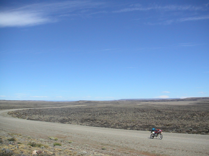 その自転車の青年はボルハと言い自分の事をスペイン北部のバスク人だと言う。スペインのことは詳しくないが時々本に出てくる話によればスペイン人とは別の人種でバスク語という全く別の言葉を話す人達でスペインからの独立を求める運動もあるところだ。彼の雰囲気は明らかに僕のイメージするスペイン人とは違った。言葉は多くないがしかしそれぞれの言葉が深いところから考え抜かれて出てくる感じがした。何か日本の侍が持っていたであろう様な雰囲気、バスク人の誇りを感じさせるようなオーラがあった。僕はそんな彼が気に入ったし、お互いに通じ合うものがあった。彼はとても疲れていた。笑顔が少なくしばしばため息をつき僕にもう疲れたのだと言って自分の弱さをさらけ出す。憔悴し切った顔には深い孤独感も刻まれている。今日も激しい向かい風や凸凹の道に悩まされたらしい。それだけなら他の旅行者と同じだから何と言うことも無いが、もう5年間も家を離れて世界を旅しているのだ。ウシュアイアで旅を終わりにすると言うからあと遅くとも数週間で終わりになるはずだったのに、その勇気すら失いかけていた。お金が無いからウシュアイアでヨーロッパまでの貨物船を探すつもりだと言うし、彼の自転車のかつて歯車だったギアは磨り減ってただの丸になり残されたギアは1枚しかなく、ブレーキは効かなくなっていた。何かしたくても僕は彼を励ますことしか出来ない。