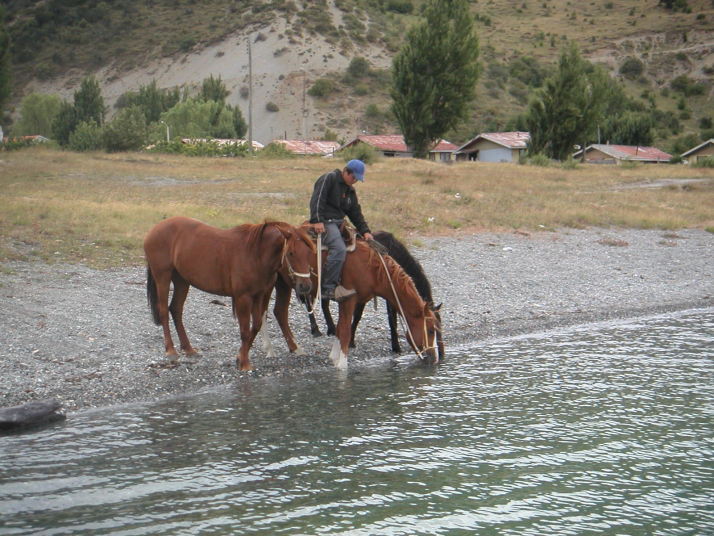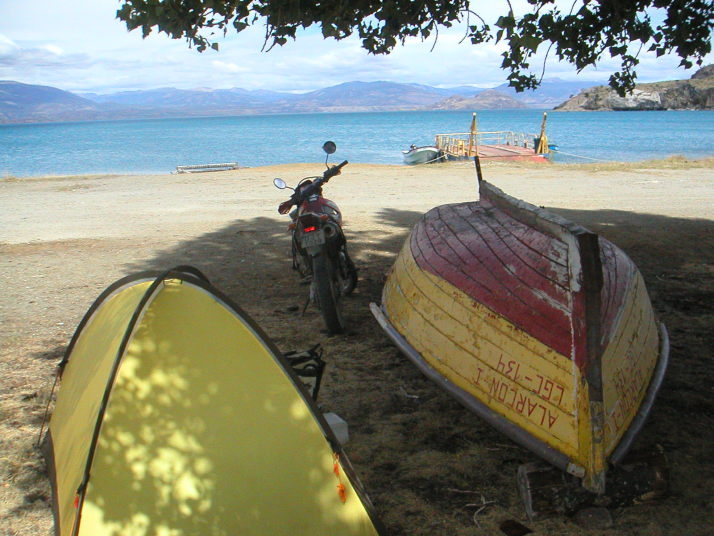 テント場を探して枝道に入り、険しい山を一つ越えた終点にある湖畔の小さな村プエルトサンチェスに行った。村の入り口にかかる素朴な木の橋は大きな車は通れないから川の中にも道がある。村の住人は30人は居ないだろう。誰もが気さくに挨拶をしてくれる。気に入って小さな船を舫っているだけの“港”の前にテントを張る。氷のように冷たい湖に飛び込み、湖岸でワインを飲みながら日光浴を楽しむ。日差しは強く暑い。このビーチが愛おしくなり2日目の午後には湖岸のゴミ拾いをして焚き火をした。夕方になると村人が糸だけを持って釣りに来た。少女が手で小さな魚をすくって遊んでいる。満天の星。時間を忘れる音さえも無い世界。何も無いけれど心は満たされている。