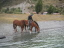 7号線に向かう265号線。断崖絶壁の険しいダート道からトランキーロ湖と雪を被った山々を右に見て走る。トランキーロ(Tranquilo)と言う名の通り“ゆっくりとした”スイスアルプスをワイルドにしたような絵のような風景だ。湖を覗き込むと光の届く限り青い水が透き通り吸い込まれそうになる。7号線に曲がっても素晴らしさは変わらない。道路地図に載っていることが不思議なくらいの狭い林道だ。自転車のグループ旅行をしている人も多い。ピンクや紫、黄色に白、色とりどりの花が咲き乱れる。馬に乗った現地人達と時々すれ違い挨拶をする。たまに現れる部落も素朴で素敵だ。何も手に入らないように見える小さな村でも人に聞くとパン屋があったりするが外見は普通の家だ。こんな村では誰もが何かを売っているような気がする。厳しい冬を過ごす家は外壁がこの地方独特のうろこ状の板で装飾されカラフルで楽しい。道は狭く景色は目まぐるしく変わる、まるで日本の山奥の林道の様だ。たまに車とすれ違うと埃を被って服が真っ白になる欠点もあるし、決して一般観光客向きのルートではないけれどとってもお勧めのルートだ。