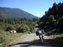 美しく平和な地球の果ての様な村Pt.Puyuhuapiでは自転車旅行やバイク旅行の団体と出会い自転車旅行者達とキャンプをした。人と話すとガソリンタンクの悩みも半減し気分が晴れて大分楽になる。キャンプ場にはアルゼンチンからレンタカーで来ていた若いイスラエル人カップルも居た。