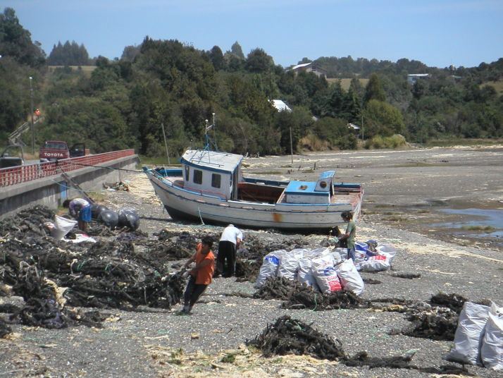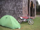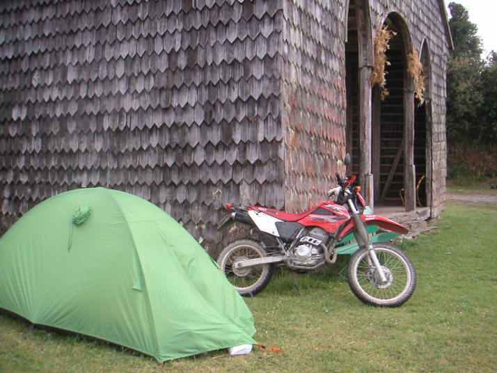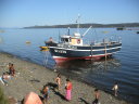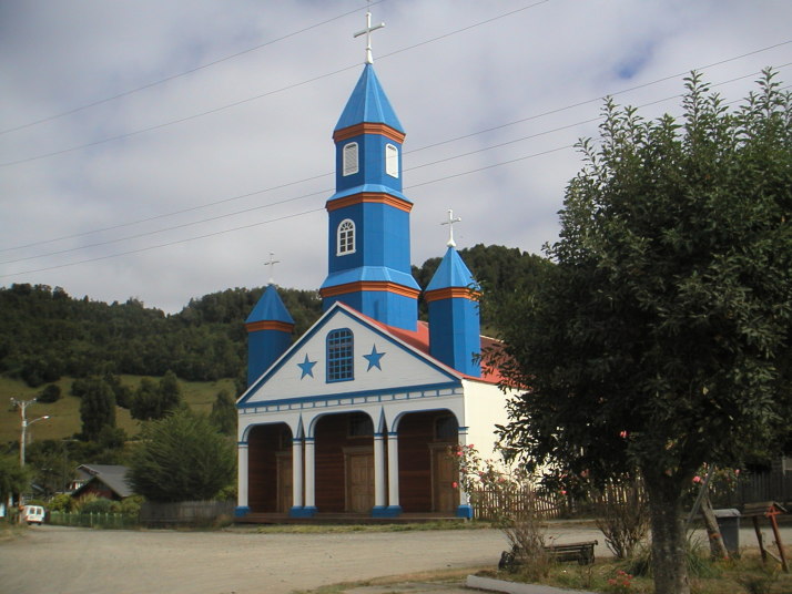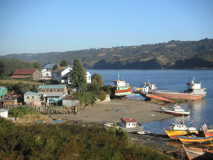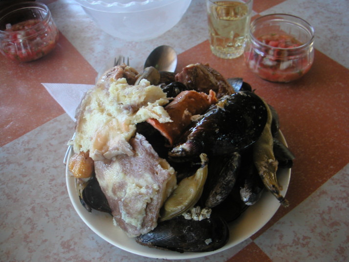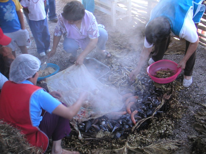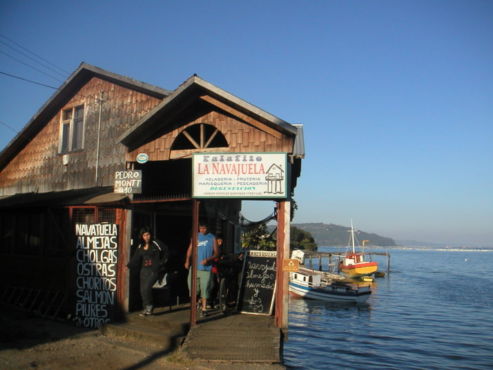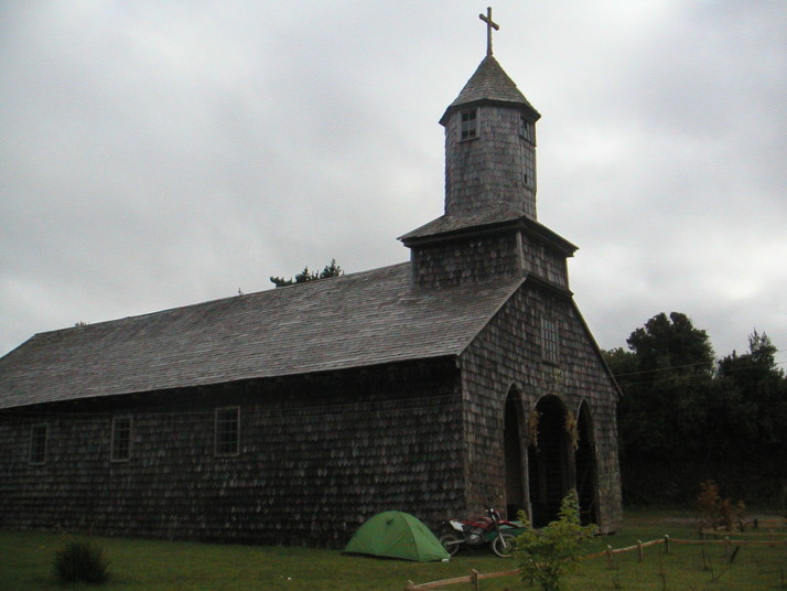 チロエ島に行くと色んな魚介類の料理にありつける。市場には必ず食堂街があり、値段もプエルトモンより断然安い。島の南端の町Quellonの対岸に素敵なおばさんの経営する安くて(1500ペソ)綺麗なキャンプ場では島の名物料理クラントを食べた。クラントは焼いた石の上に色んな貝や肉や野菜を何層にも重ねて、その上に干草や土を被せて蒸す料理だ。チリ人にとってもここチロエ島は観光地で本土からやって来た人達が多い。キャンプをしていると彼らから話しかけられたり旅の記念に一緒に写真を撮ってくれないかと尋ねられる事も多かった。一方で舗装道路から外れると観光客は殆ど見かけることは無く素朴な風景を見ることが出来る。牛車を引く人や馬に乗る人、ちょっと異様な光景でもあるが一面に鮭やメルルーサなどの養殖場が広がっている湾、それを見渡すキャンプした静かな古い教会。岬の村Tenaunはとても情緒があって隠れ名所と言っても良いだろう。チロエ島に限らず南米の田舎はどこでもそうだが、誰もが手を上げたり声をかけたり挨拶してくれるので気持ちが良い。