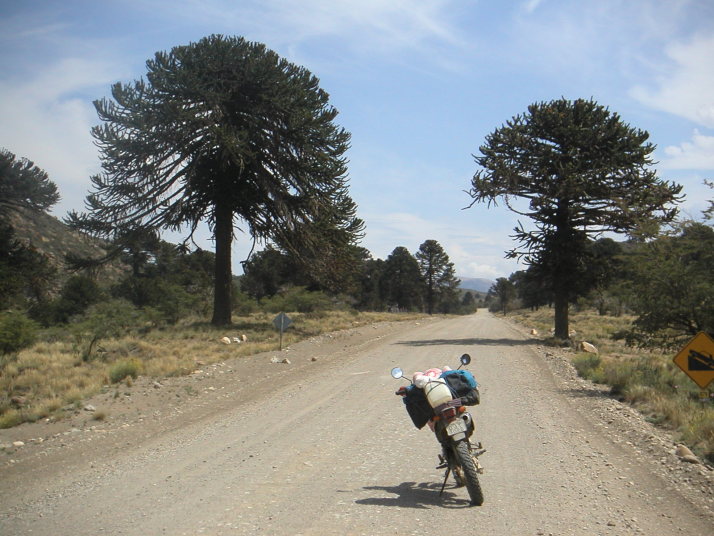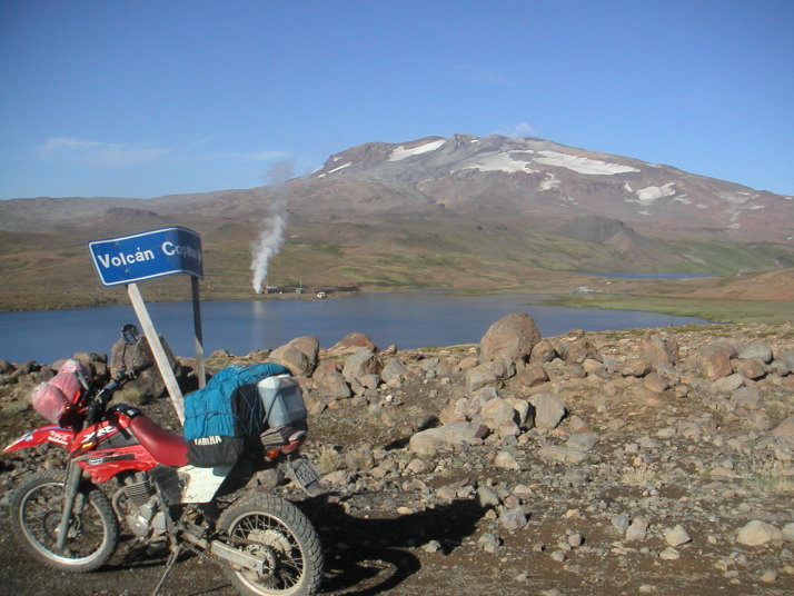 LosAndesを離れ23号線の未舗装路に入るともう車も観光客も殆ど見ることは無くなる。川沿いの西部劇に出てきそうな風景の道は気持ちが良い。国境にあるAlumine湖は寂しげで観光地の雰囲気はもう無い。チリの国立公園のマークにもなっている不思議な枝の形をした木が現れ始める。だんだんと荒涼とした山岳地帯の雰囲気が広がってくる。前方の空に黒い雨雲と稲光が見え、そろそろ雷雨に突入するのが分かる。南米の秘境に来ている雰囲気を盛り上げてくれる。案の定激しい雨に迎えられるが、直ぐに雲から抜け出した。南米は気象のスケールも大胆だ。途中21号へ左折してCopahueの温泉を目指した。