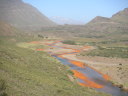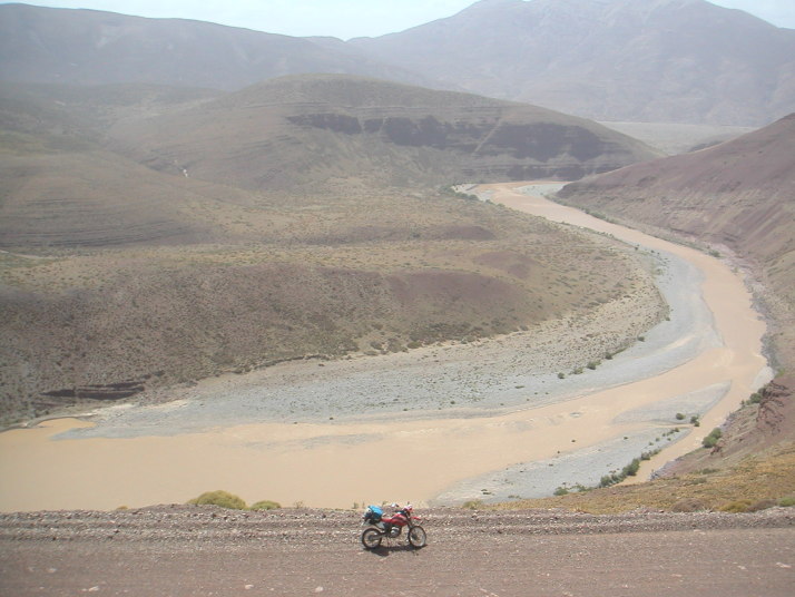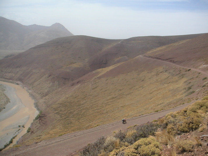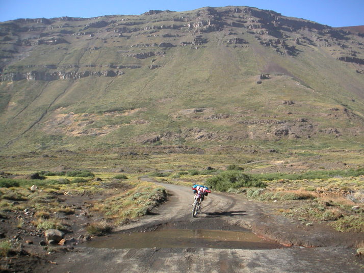 Copahueを離れて少し距離を稼ごうと思っていたけれど、景色が素晴らしすぎて写真を撮るために立ち止まったりしてなかなか前に進めない。観光客が殆ど訪れることはないであろうオレンジ色が眩しいAgrioの滝は、一大観光スポットになっても不思議ではない素晴らしさなのに山奥にあるばっかりに僕に独占されていた。ElCholarから東のChosMalalへ抜ける道も、遥か下に川を見ながらクネクネとした断崖絶壁の道の続く迫力満点のルートだった。