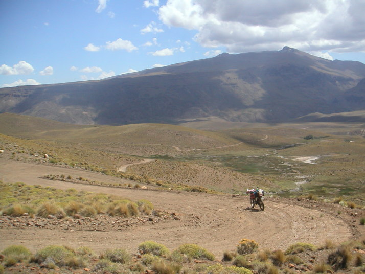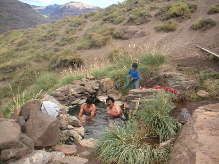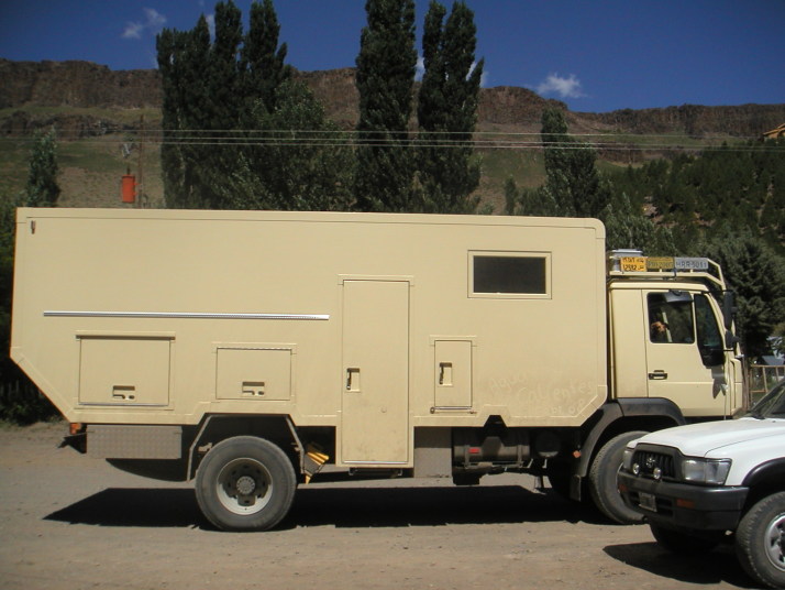 無念の撤退をして温泉に戻ると、アルゼンチン家族は居なくなっていたがCopahueの無人の温泉で僕の隣でキャンプしていたスイス人夫婦に再会した。歳は50代くらい。最初の出会いも特別な場所だったけれど、こんなところで再会するなんて彼等も相当な変わり者だ。驚くことはたくさんあった。彼らの家はドイツのトラックメーカーMANの4WDカミオンで、後部を専門のモーターホームメーカーで専用設計されている。地球上をどこでも快適に旅できるように作られた戦車とホテルを組み合わせたような城だった。僕の洗濯物を乾燥機で乾かしてくれたのには腰を抜かした。EUのナンバープレートは回転式になっていて、裏返すとアルゼンチンナンバーに変わる。アルゼンチンのガソリンスタンドでは外国ナンバーの車には倍の値段を請求するらしいので拾ったナンバーを取り付けたのだそうだ。まるで映画のキャノンボールみたいだ。スペインで拾った犬はパスポートも持っていて一緒に旅をしている。何と言う贅沢な犬なのだろう。彼らは8年間モーターホームで世界を旅している。旅と言うより、そういうライフスタイルを送っている。夕食に招待されてご馳走を頂いた。歳をとったらこんな旅も悪くないかもしれない。