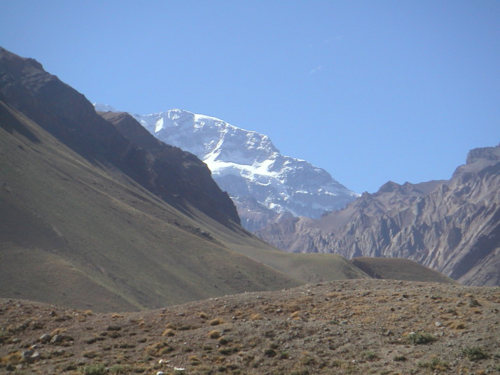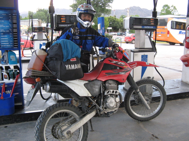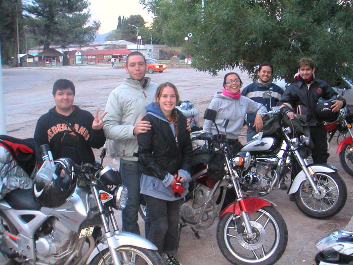夕方Uspallataに戻ってガソリンを入れていると若い男が話しかけてきた。写真を撮らせてくれと言う。彼セバスチャン(Sebastian)は珍しく先ず先ずの英語を話すチリの大学生で、オートバイグループでアルゼンチンを旅行してサンチアゴに帰る途中だった。近くに居た彼の仲間は彼を入れて7人。彼以外は彼女を後ろに乗せていたからバイクは4台だ。バイクは中国製や韓国製の125ccや250cc。初めて僕より小さなバイクで旅をする人を見て驚いた。しかし荷物は僕より遥かに多い。数日間の短い旅行だが彼等にとっては大冒険なのだ。
