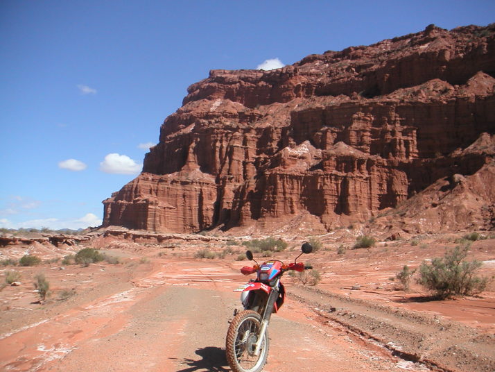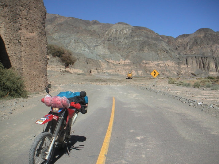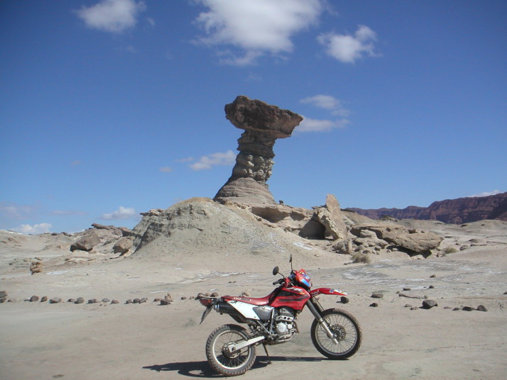 公園群の最初に現れるTalampajaの公園事務所はちょっと立派でレンジャーの対応も公園入場料も入園のルールも格式ばっていた。レンジャーは初めから英語で説明してくれたし、事務所から先は公園の用意するガイド付きのバスでしか入れず65ペソもするし、閉園時間が近いので翌日まで待たねばならなかった。食料が乏しかったので、レストランがある当初の目的地、月の谷でキャンプすることにした。月の谷の公園事務所はTalampajaよりずっと身近な雰囲気だった。何故ならTalampajaは国立公園なのに対し月の谷は州立公園だから。ガイドは付くけれどもバイクで入れるしレンジャーも気さくな雰囲気。しかも入場料は国立公園の半分の30ペソだ。“どこから来たの”と聞かれたので“メンドーサから”と答える。僕はメンドーサから北上してきたから嘘ではない。“じゃあアルゼンチン人料金で10ペソね。”という具合に更に3分の1になった。これは旅の途中で一緒だったスイス人夫婦から教わったやり方。スイス人は喋らなければアルゼンチン人と言っても通用するけれども僕は言葉からも見た目からも外人だとわかる。でも係官は多分分かっていると思うけれど関心を示さない。アルゼンチンにも日系人がいるからだろうか、はたまた外人料金の理不尽を理解してくれているのかは分からない。夜になると強風が吹き荒れ、テントを激しい雨が叩いた。この地方でこの時期の雨は珍しいらしいが、アルゼンチンのメンドーサ州に戻ってきてからカタマルカ州(Catamarca)まで、夕方になると必ず冷たい雨にやられた。地球の気候変化はこんな砂漠のような大地にも変化をもたらしている。