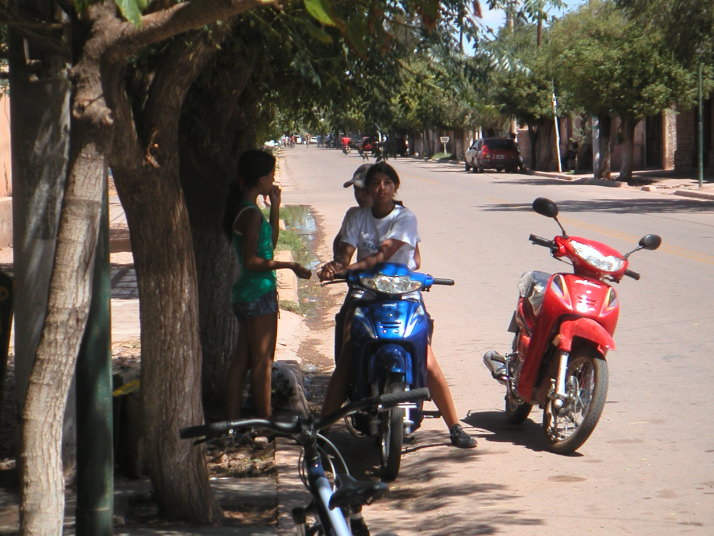 途中VillaUnionの村で食料を調達しようとしたがシエスタで殆どの店は閉まっていてキオスクでコーラとパンしか買えなかった。涼しくなる夕方の6時からここで自転車のレースがあるらしく、産業も無い様に見える小さな村にカラフルな自転車のジャージを着る人達がたくさんいたり、ロードレーサーを売っている自転車屋があったり、安いグレードながらもそれなりにまともな自転車だったりするのが意外だった。日本では初心者でも超高級パーツで組んだブランド自転車に乗る人が多く、レース会場に並ぶ自転車だけを見るとツールドフランスに来てしまったみたいに錯角する。しかし金をかけていないアルゼンチンの人にとってもレースはレースで価値は変わらないはずだ。レースを始める前にブランドというハードルを越えなければならない日本人はちょっと大変だ。