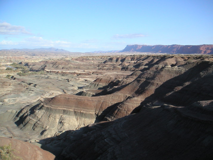 月の谷はその名の通り生物の気配を感じさせない風化した土と岩の大地だった。2億3000万年前の地層が見られる今も見られる貴重な場所だ。当時ここを闊歩していた恐竜達が消えてここの博物館に復元展示されているように、また数億年後には人間の化石が得体の知れない生物によって発掘されているかもしれないな、と不思議な時空感覚を味わった。