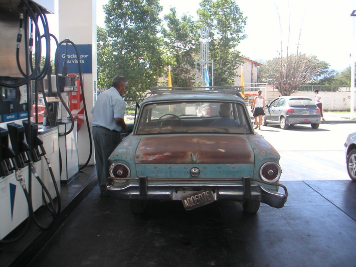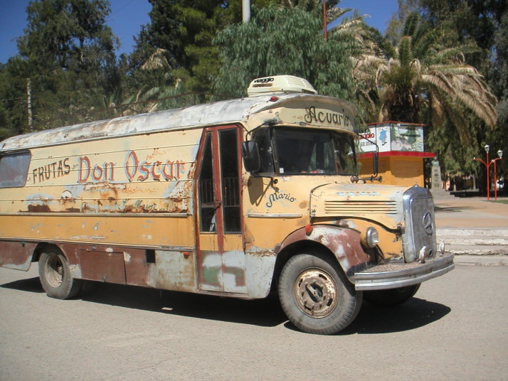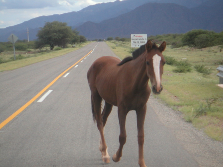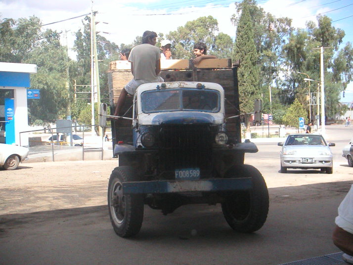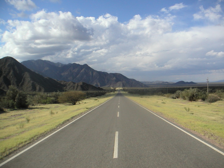 74号線を選んで再び北上を始める。左右の遠くに山をみながら追っても追っても逃げていく地平線目指して進む。途中道路脇にブドウ畑が広がっていたり道路沿いに平行して走る廃線になった線路や朽ち果てた駅が見える。この辺りの街には30年、40年前の主にはアメリカの乗用車やトラックがのろのろと走っている。トラックの荷台には人がたくさん乗っていたりする。一方では新しい中国製の小さなバイクが溢れ、若者がノーヘル、二人乗りで意味も無く通りを行き交っている。過去のアメリカと現代の中国を行き来するような奇妙な光景だ。人々は貧しそうだがそれなりに車もバイクも走っているし、ブドウ畑とワイン作りと僅かな観光くらいしか産業の無いこの地方で一体どうやってこんなに大勢の人達の文明生活が成り立つのか不思議でならない。恐らくはアルゼンチン経済の回復、パタゴニアでの石油生産、中国の発展がこの人達を支えているのだろうが、それは陽炎の様に危うく見える。