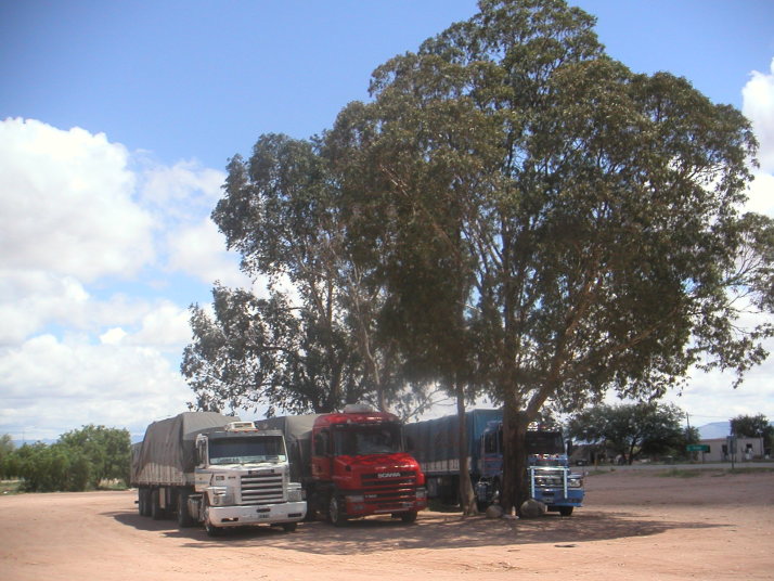 150号線を東に進み、5つの道路が交差するPatquiaの交差点は大陸の雰囲気が漂っていた。強い日差しを避けようとトレーラー達が日陰を求めて休憩している。大陸を移動する彼等は家族と共にキャビンの中で生活していたりもする。交差点の食堂で昼食をとって再び何も無い乾いた大地へと去っていく。現代の砂漠のラクダ商人のようだ。