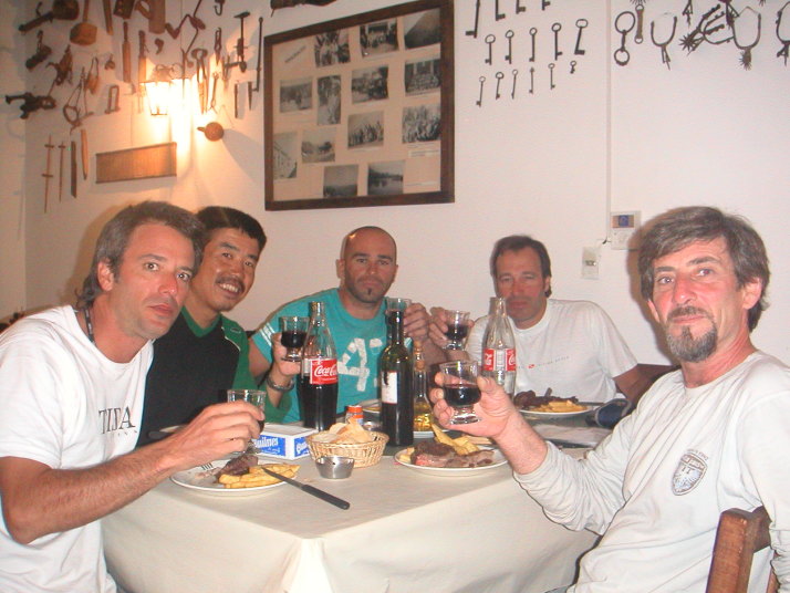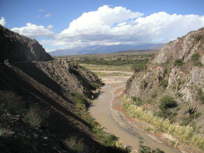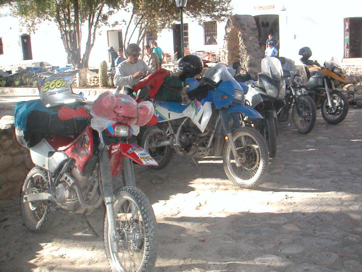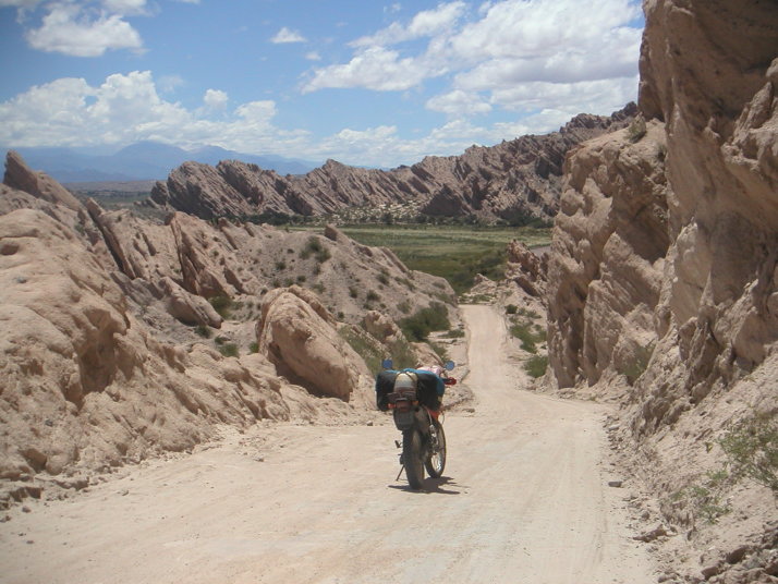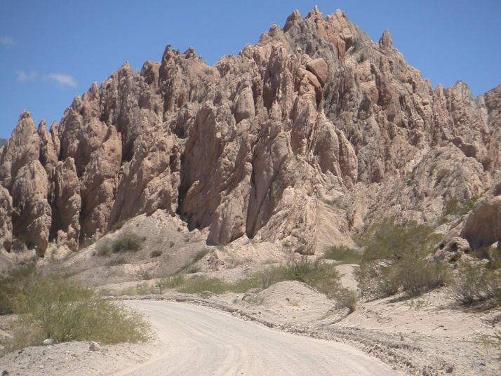 この日の目的地Cachiまでは160kmしかなかったけれど、カーブの連続する狭い悪路が続き、カーブを曲がるごとに異なる表情を持つ山や岩が現れるので、そのたびに写真を撮ったり休憩をするので全然前に進めなかった。道端で休んでいるあるときに久しぶりに見るバイク旅行者の集団5台に抜かれた。彼等が休んでいるときに今度は僕が抜き返した。手を上げて挨拶をする。その彼等とCachiのガソリンスタンドで再び一緒になり一緒にホテルに泊ることになった。ホテルは部屋が少なかったのでベッドがたくさんある部屋で皆と一緒に寝ることになった。彼等はブエノスアイレスから来たアルゼンチン人で超特急でマチュピチュを目指す旅の途中だった。アルゼンチンの習慣は分からないが、ブラジルでは誕生日に周りの人にプレゼントを渡す習慣があるので僕が彼等にワインを御馳走すると、彼等は逆にビールと食事を御馳走して祝ってくれた。