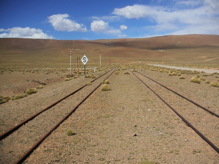 線路はこの先もチリ方面に通じていたが今はもう使われておらず代わりに今は大きな送電線が通っている。朽ち果てた駅舎や風化した線路が寂しさをかもし出している。ロバに薪を載せたり、薪を持って家に向かって歩く女性を見た。