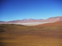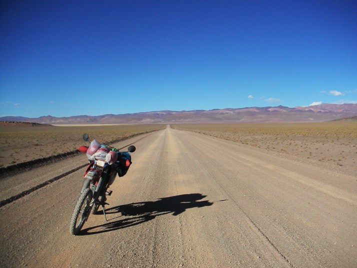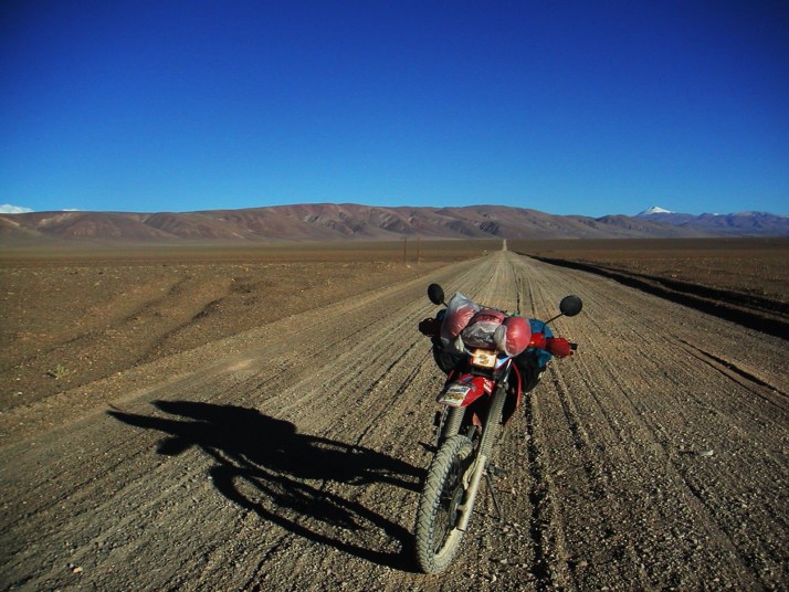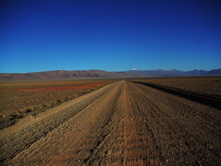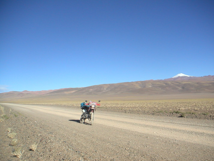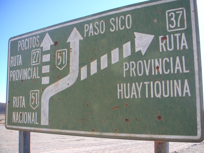 コブレスを出てから51号のアルゼンチン国境までの100Kmには文字通り何も無い。遠くに雪を抱いた山、黄金色に輝く大地、紫や赤と次々と色彩を変える近くの山。かろうじて道だけがそこが天国ではなく現実の世界だという事を教えてくれる。夕方日没が迫る8時にアルゼンチン側のSico峠国境事務所にたどり着いた。そこは何も無い月の表面にポツンとある人工物のようだった。ここでテントを張らせてくれと頼むと、親切にも事務所の横にある誰も使っていない家を貸してもらえる事になった。標高が高いので夜はかなり冷え込むし、風が強くなるのでとても有り難かった。家はガレージがあり、プロパンガスのシャワーやキッチン、ベッドルームまである快適さだった。空いているから使えばいいさ、といった雰囲気で、翌日出て行く時も特に誰かに気を遣われる事もなかった。