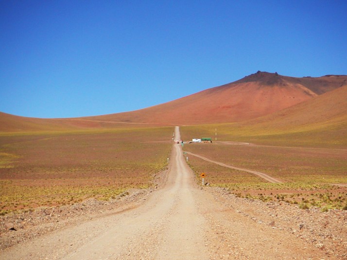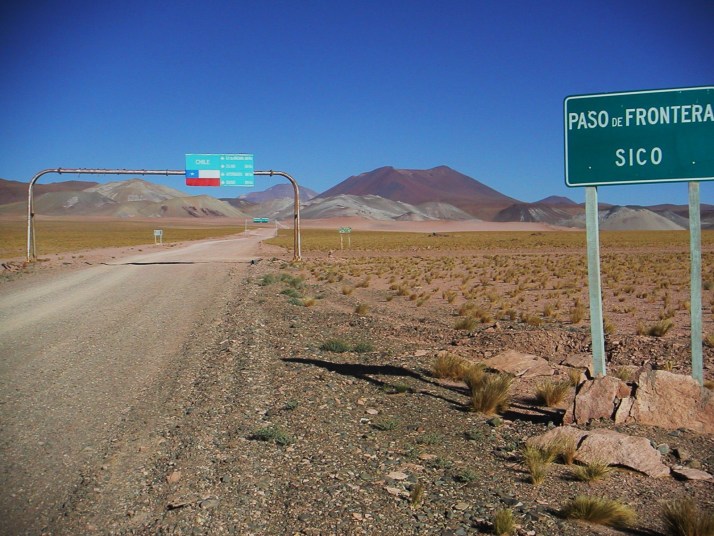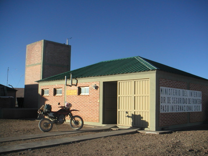 そこには小さな建物が2つあり一つ目の事務机が置いてあるだけの暗い部屋でぶっきらぼうな制服の係員にパスポートとバイクの書類を見せて、それらの情報を彼がノートに手書きで書きとめる。アルゼンチンでもチリでも同じ事だが、国境毎に記入事項は違うし、ここの様な小さな国境ではパソコンも無くノートに手書きしている。とっくの昔に情報化社会になっているのに、国の玄関口である国境事務所にすらパソコンが無い。全く呆れてしまうと同時に昔にタイムトリップしているようで面白い。もう一つの事務所は税関で、珍しくとても愛想の良い人で驚いた。僕の事を下の名前で呼んでくれるし、荷物検査のあと別れるときは握手をして旅の成功を祈ってくれた。チリの国境係員のイメージを一気に良くしてくれる出来事だった。