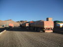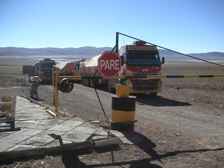 朝9時までゲートは閉まっているのだが、ゲートの前には夜のうちに到着したトレーラーが3台いた。運転手達は常連と見えて係員達とも顔見知りのようだ。出国手続きのあと係員がトレーラーの荷物を検め手動のゲートを開けると、運転手は運転席から身を乗り出して係員に雑誌プレイボーイを渡して走り去った。女性どころか人さえ見ない世界で働く彼らの心の絆は強いに違いない。係員は僕にも親切で、“この先も当分ガソリンが手に入らないから足りなかったら分けるよ”とも言ってくれた。ガソリンは問題なかったけれど夜の冷え込みのせいでバッテリーが上がってしまっていた。砂利道の勾配を何度も押し上げてエンジン押しがけをし、酸素の薄さもあって息があがり、冷えた体が朝から一気に温まった。