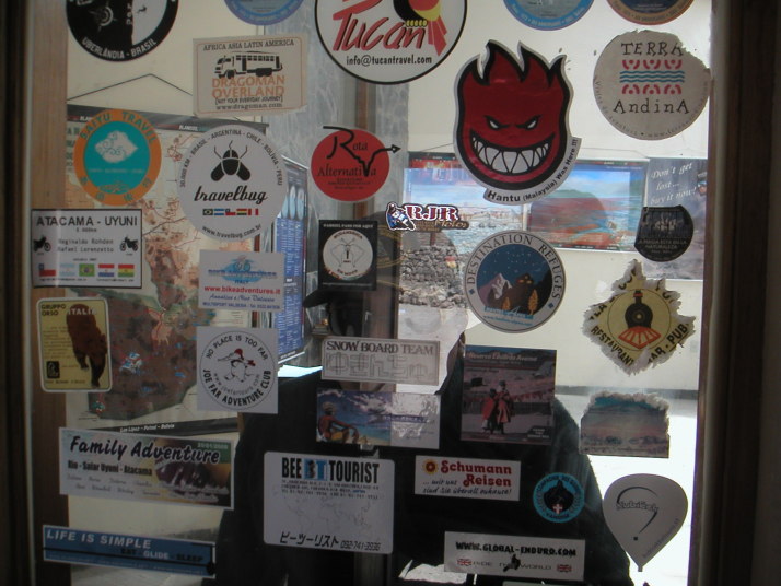 国境で“税関は別の場所にあるから”と教えられ翌日訪ねた標高5020mの税関(ADUANA)のおじさんはいい人だった。チリ税関との不法入国騒動の後だったからやや緊張していたのだが、誰もいない事務所から声をかけると廊下の奥の部屋からタオルで下半身を隠した真っ裸のおじさんが出てきて“ちょっと今シャワー浴びるから待っててね。”と言う。“ツアー以外で国境を越える一般の車は1日1台か2台しかいないから暇なんだよ。”と言ってゆっくりとバイクの書類をタイプしてボリビアの書類を作ってくれた。その間カメラの電池を充電させてもらったり、少し急激に登りすぎたのか頭痛がしたので高山病の薬をくれたり、彼の家族の話を聞いたりと、お役所とは思えない雰囲気だった。ここには天使が降りてきそうな景色があり、それに似合う人達がいる。