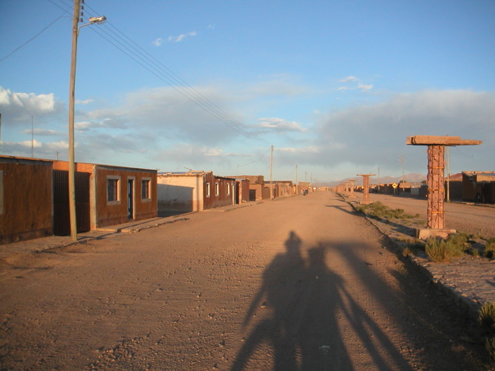 この日の夕方、ようやく道路らしい道路に出てボリビアで初めての村、素朴な先住民の住むAlota村の宿に泊った。宿代はたったの20ボリビアーノ(280円)。同じ宿に泊ったランドクルーザーの騒がしいツアー客12人、イギリス、ノルウェー、カナダ、オーストラリアのお洒落な若者達はすまし顔で挨拶もままならず、お高くとまって見えた。質素な生活をし、ちょっとはにかんだ人懐こい笑顔の静かなボリビア先住民とは対照的だった。サンチアゴで知り合ったオーストラリア人の友人ジョーダンが僕の事をボリビア人と間違えたのは当たらずしも遠からずかも知れない。僕は内面も外面もボリビア人の方に近い。