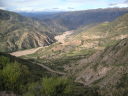 酸欠と衝撃的な経験と後ろめたさですっかり胸が重くなって町を出たが、新鮮な空気と越えて行く山々の優しい風景が心を取り戻させてくれる。ポトシからボリビアの昔の首都スークレへ向かう道路は有料道路で舗装されている。バイクは無料なのだがこの時は知らずに4ボリビアーノ払ってしまった。料金所のおじさんのポケットに入ったのだろう。