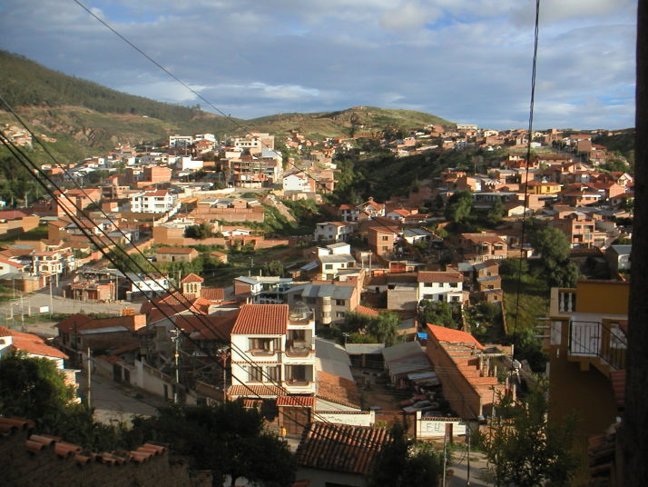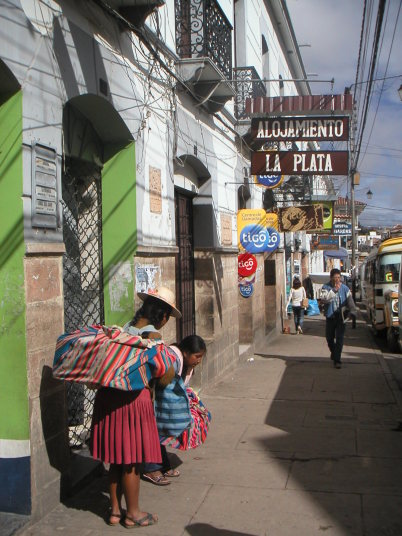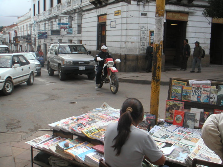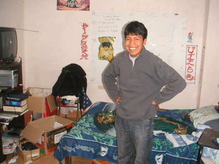 スークレの街もポトシの様に突然に現れる。標高は大分下がって2500mだ。街の大きさは更に大きく白壁とコロニアルな建物が美しい。街の中心でインフォメーションのマークを見付けて建物に入ると、そこは大学の構内だった。大学には観光学科があるので生徒が勉強を兼ねて旅行者に情報を教えてくれるのだ。男子学生に片言の日本語で話しかけられてびっくりした。こんな所にも日本人観光客が多いのかと思ったらそういう訳ではなくて、日本の漫画の影響で日本語に興味があり、JICAボランティアの日本女性の日本語授業を聞いたからだそうだ。驚くことに神道や日本資本主義の父、渋沢栄一のことも知っていた。でも日本語は挨拶までで後はスペイン語と英語で話をした。南米では珍しく、しかも彼の若さでは更に珍しく意思疎通に十分な英語を話した。適当なホテルを紹介してくれるように頼んだら一緒に行って交渉してくれると言うのでノーヘルの彼をパラグアイでやったみたいに荷物の上に座らせて街を走った。最初のホテルはバイクを中に入れられなかったので次を探すことにしたが、彼が“自分の部屋に泊れば良い”と言ってくれたので興味半分見に行った。日本のアニメのポスターなどが貼ってあったりしてジェネレーションギャップを感じてしまう。信頼できる若者なのは分かっていたし、狭くて暗い部屋だったけれど寝るには十分。でもさすがに知り合って直ぐに泊めて貰うのは気が引けて適当なホテルに部屋を取った。