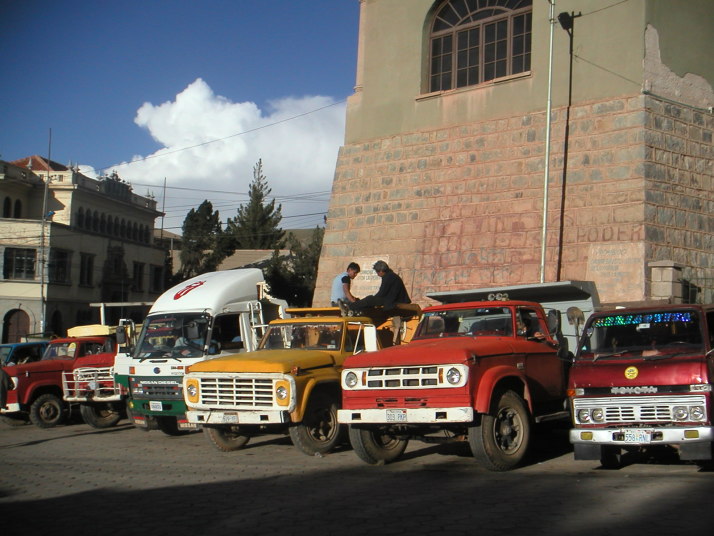 昔ロシアを旅した時にも似た様な光景を目にした。極東の港町ウラジオストクに陸揚げされた車が鉄道やガタガタの道路を使って自走で東に運ばれていた。ロシアは右側通行なのに極東地域には右ハンドルの日本の中古車しか走っていなかった。その光景はボリビアの様に楽しいものではなく、腹が立っていた。何故なら中古車に混じって多くの盗難車が渡っていたからだ。その頃の新聞には大きく報道されていたし、知り合いが車を盗まれた事もあるし、友人がウラジオストクの中古車屋の車体番号を日本の陸運局に照会したら全て盗難車だったこともある。