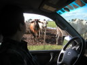 “金が入ってないなら謝礼金次第で必ず出てくる”という洋一さん達のアイディアで懸賞金付きの張り紙を出すことにして、信子さんと商店に相談に行った。すると商店のおばさんが“確かあの夜は近くにあの娘が居たよ”という情報をくれたので念のため名前の挙がった娘の家に行った。それは信子さんの敷地の中に住むボリビア人の使用人の娘だった。娘は“私は途中で帰ったけどまだ他の男の子が居たわ”と教えてくれたので更にそのボリビア人の男の子の家に向かう。その一家はヒロ君の使用人だ。その途中でその本人と母親が前から荷馬車を操って牛乳を運んでいるところに出くわした。信子さんは車を横につけて荷車の上の少年にスペイン語で聞く“あのさ、こうこうしかじかで日本人バイク旅行者がバッグ落としたみたいなんだけど持ってる?”彼は平然と答えた。“あるよ”。