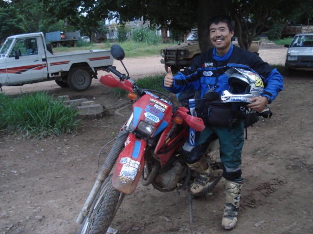 心配していただいた皆へのお礼の連絡と、今度こそ本当のお別れを言って土曜の朝にオキナワを後にした。サンタクルスへは信子さん、比嘉先生、トモヤ先生と一緒に行った。信子さんのお母さんの家がサンタクルスにあって皆で泊めて貰うことになっていた。先生達は日曜にある会合出席のため、信子さんは各地の日系人が定期的に集まって開催している子供達のサッカー、バレー大会のオキナワチーム応援のため、僕は月曜の列車に乗るため。彼等は車で僕はバイク。途中までのダート道、ちょっと前に出発した彼らの車に追いつくように全開で走ったら振動で後ろのフラッシャーが取れて無くなった。でも全然気にならない。パスポートもあるし、またバイクに乗れる。
